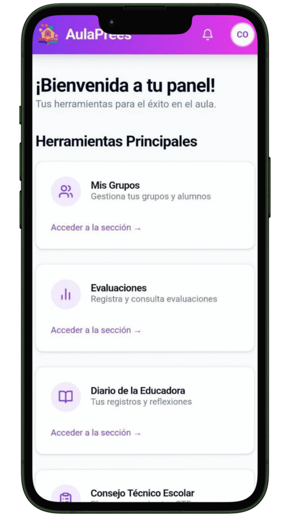 Con la aplicación web de AulaPrees, compatible con cualquier dispositivo y sin descargas. Planea y evalúa en minutos.